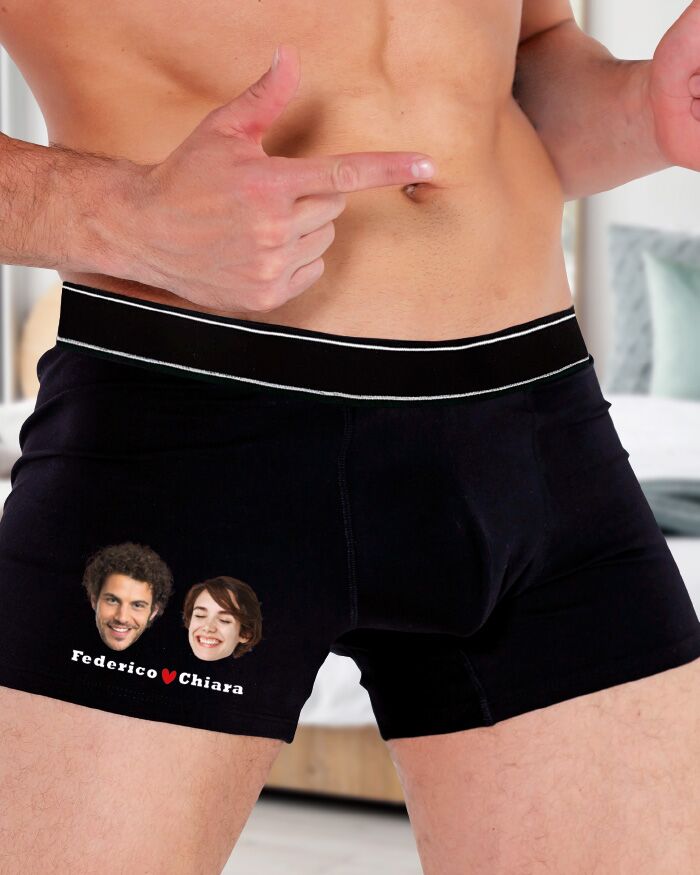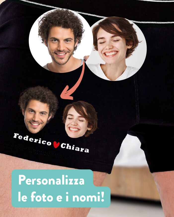 - PERSONALIZZABILE: personalizzalo con i vostri nomi e con la foto dei vostri volti. Che sia per San Valentino o per l’anniversario, l’importante è divertirsi! E con questi slip il divertimento è sicuramente assicurato 😉