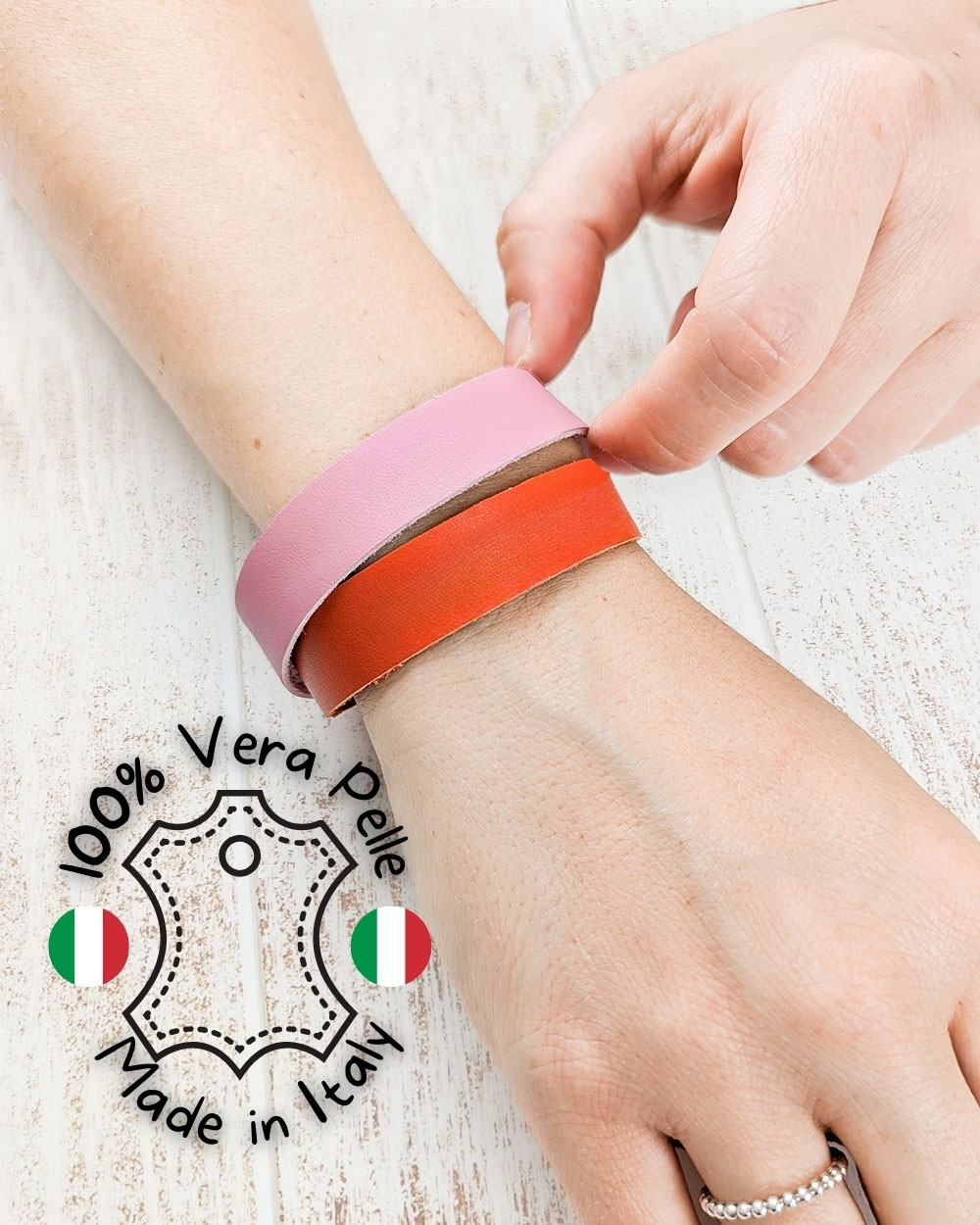 Bracciale in Vera Pelle Made in Italy, Colore e Taglia a Scelta