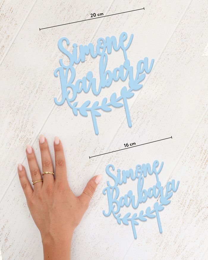 La lunghezza dei bacchetti che vanno inseriti sulla torta è pensata in modo che ci siano “3 cm” per inserire stabilmente il cake topper all’interno della torta. Se necessitate di un bacchettino più corto o più lungo, o se avete bisogno di misure speciali contattateci a servizioclienti@olalla.it saremo felici di potervi aiutare.L’altezza del cake topper dipende anche dalle eventuali personalizzazioni richieste.