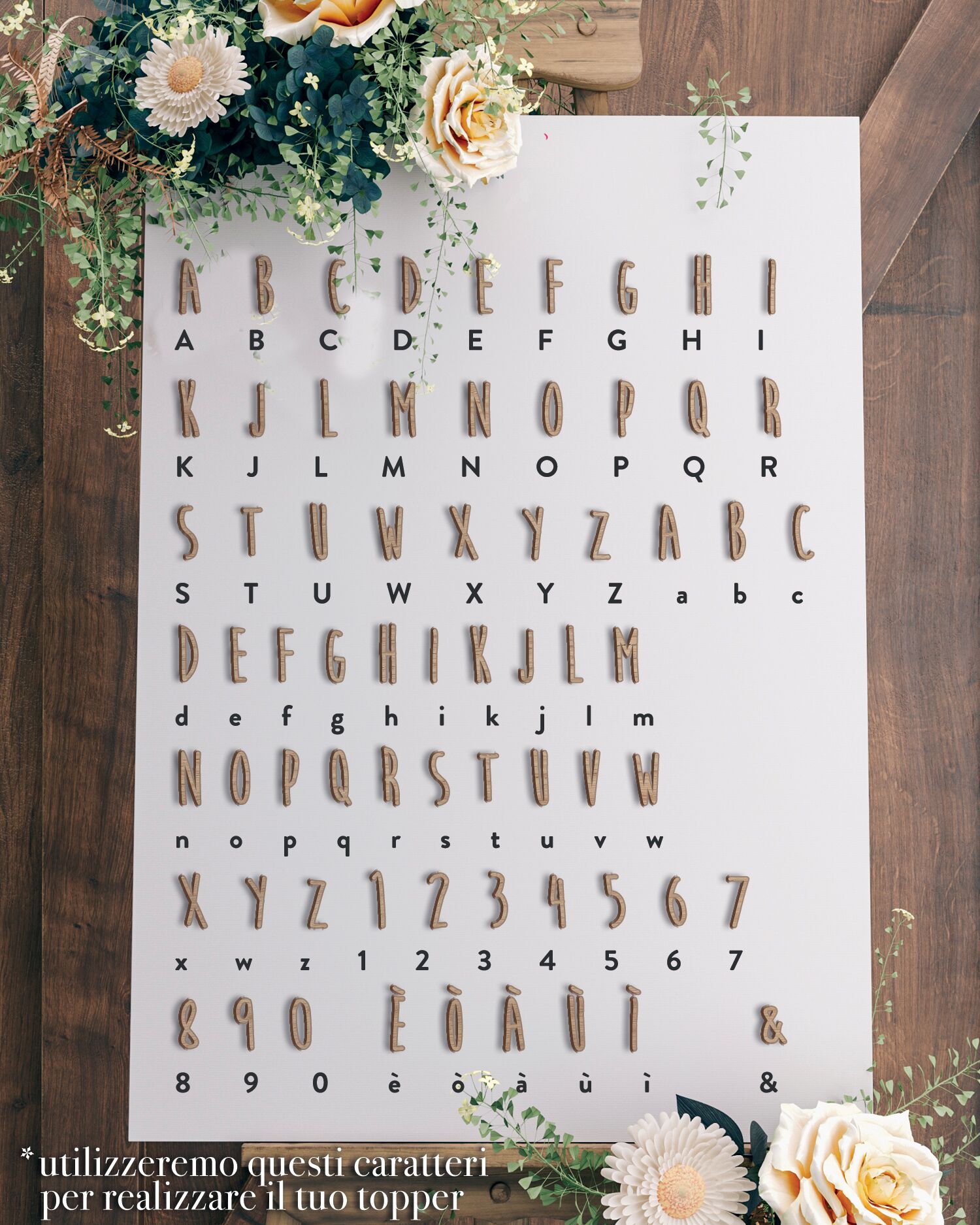 Splendido cake topper in legno con i vostri nomi incisi a laser. Un modo originale e molto personale per dare un tocco unico alla vostra torta nuziale. Vi basterà semplicemente inserirlo sulla base più alta della vostra torta di matrimonio per trasformare con stile il look della stessa.