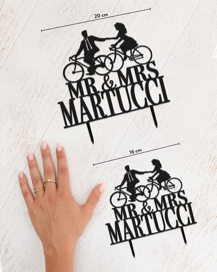 Originalissimo cake topper che puoi personalizzare come più preferisci scegliendo il materiale, tra legno di betulla e plexiglass, le dimensioni, il colore e, ovviamente, il nome da scrivere. Per qualsiasi domanda o consiglio su eventuali modifiche, i nostri grafici saranno a tua disposizione al servizioclienti@olalla.it. Tutti i nostri cake topper sono dotati di bacchettine, la cui lunghezza puoi deciderla direttamente tu scegliendo l’opzione che più si addice alle tue esigenze, che agevolano l’inserimento sulla torta. Essendo comunque prodotti molto delicati, consigliamo sempre di avere molta cura nel procedere.