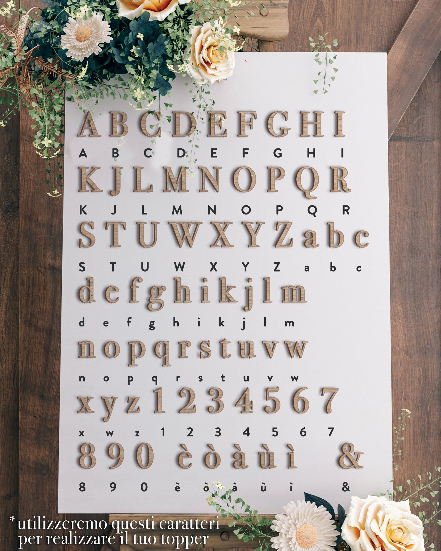 Questi cake toppers sono incisi a laser su acrilico spesso 2 mm o legno di betulla spesso 3 mm a seconda della vostra preferenza. Se non siete sicuri di che dimensione o colore scegliere il vostro cake topper, contattateci a servizioclienti@olalla.it per ricevere la nostra consulenza!