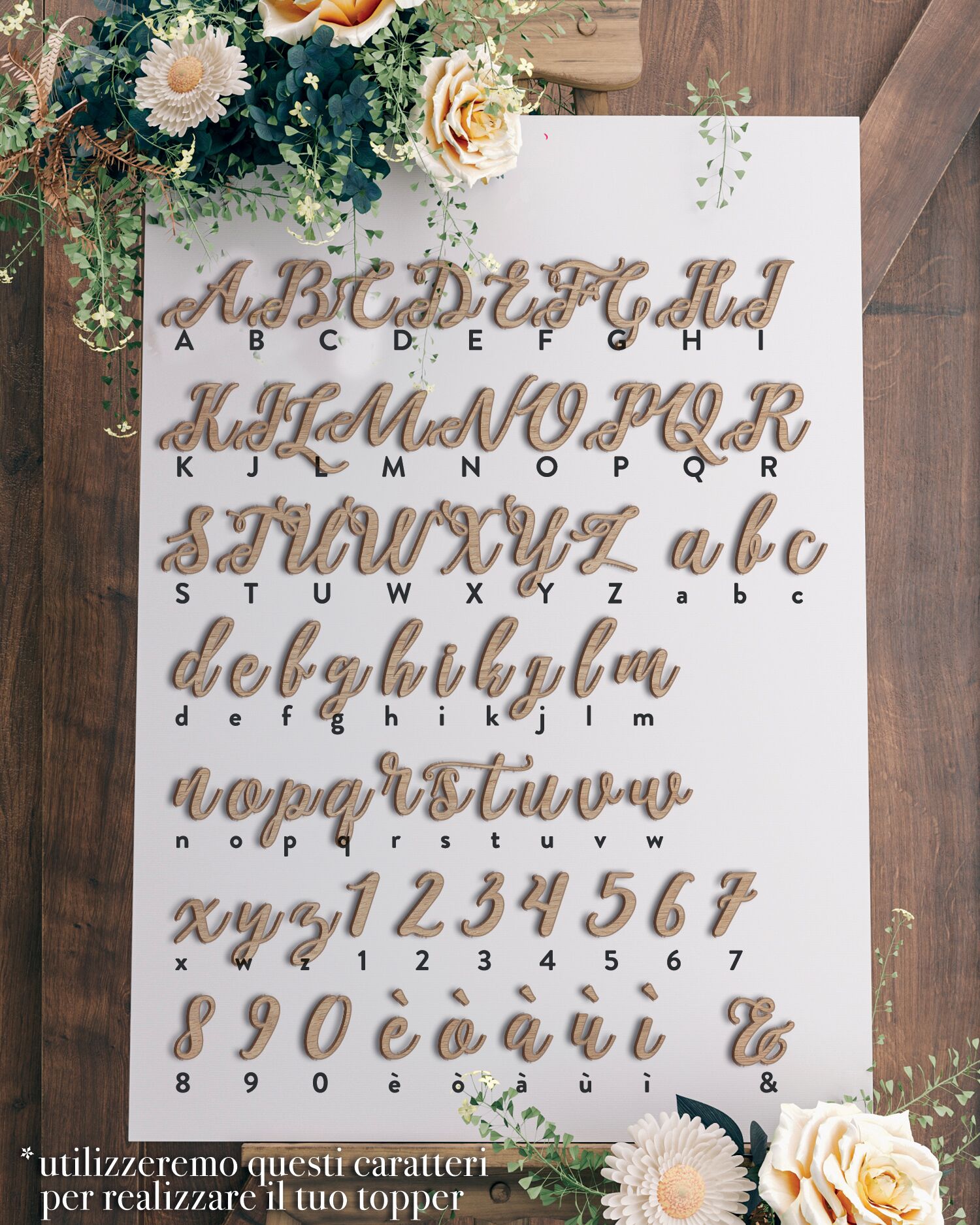 Questi cake toppers sono incisi a laser su acrilico spesso 2 mm o legno di betulla spesso 3 mm a seconda della vostra preferenza. Se non siete sicuri di che dimensione o colore scegliere il vostro cake topper, contattateci a servizioclienti@olalla.it per ricevere la nostra consulenza!