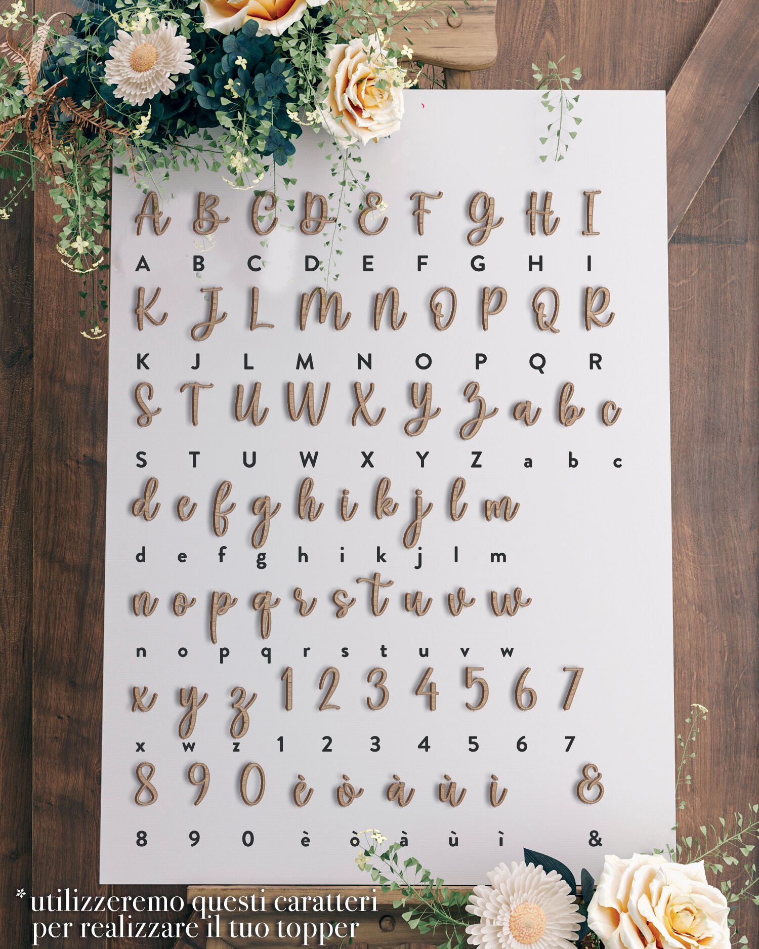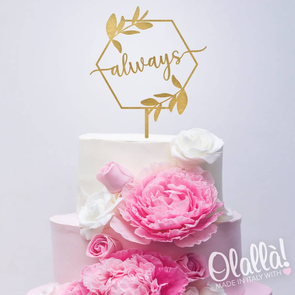 Questi cake toppers sono incisi a laser su acrilico spesso 2 mm o legno di betulla spesso 3 mm a seconda della vostra preferenza. Se non siete sicuri di che dimensione o colore scegliere il vostro cake topper, contattateci a servizioclienti@olalla.it per ricevere la nostra consulenza!