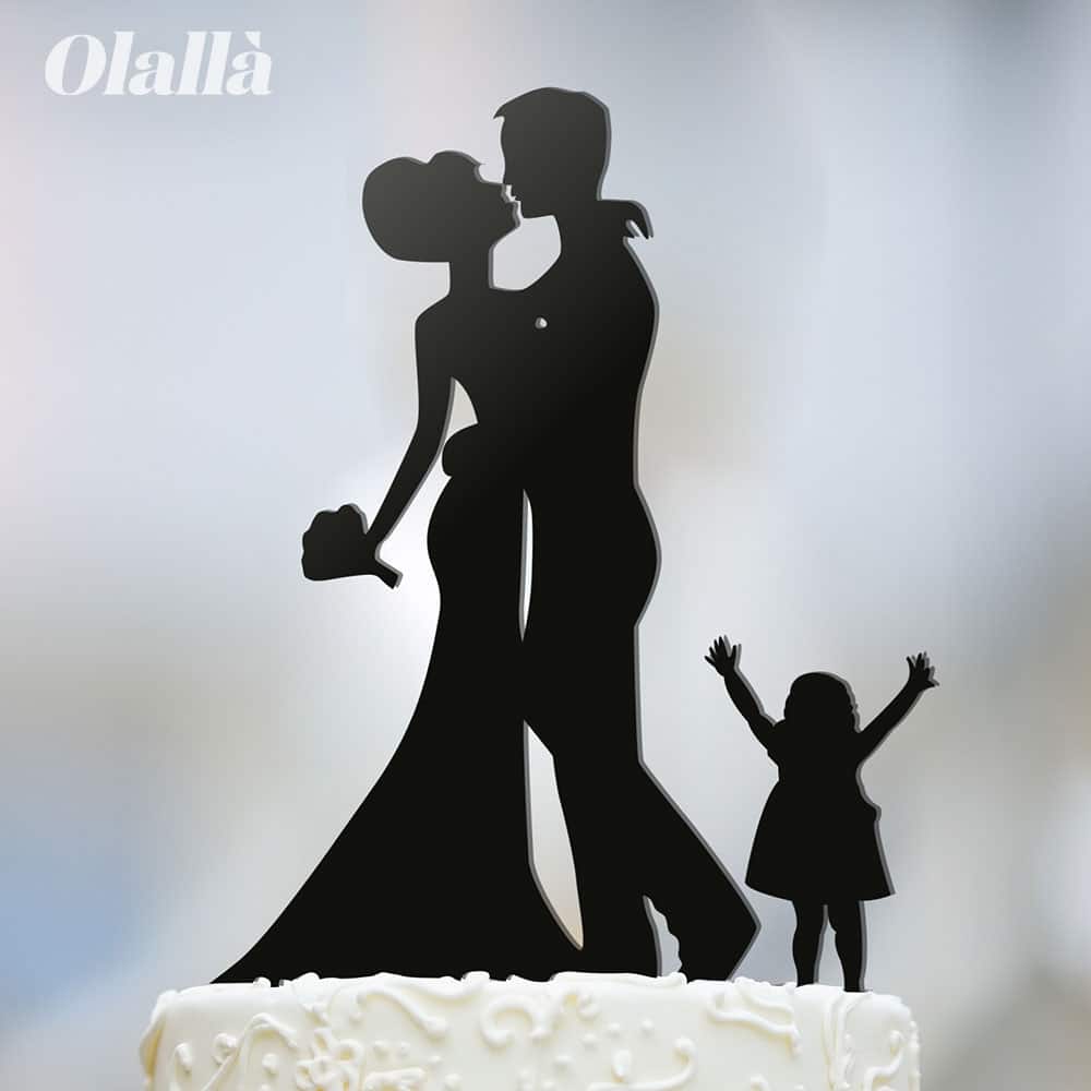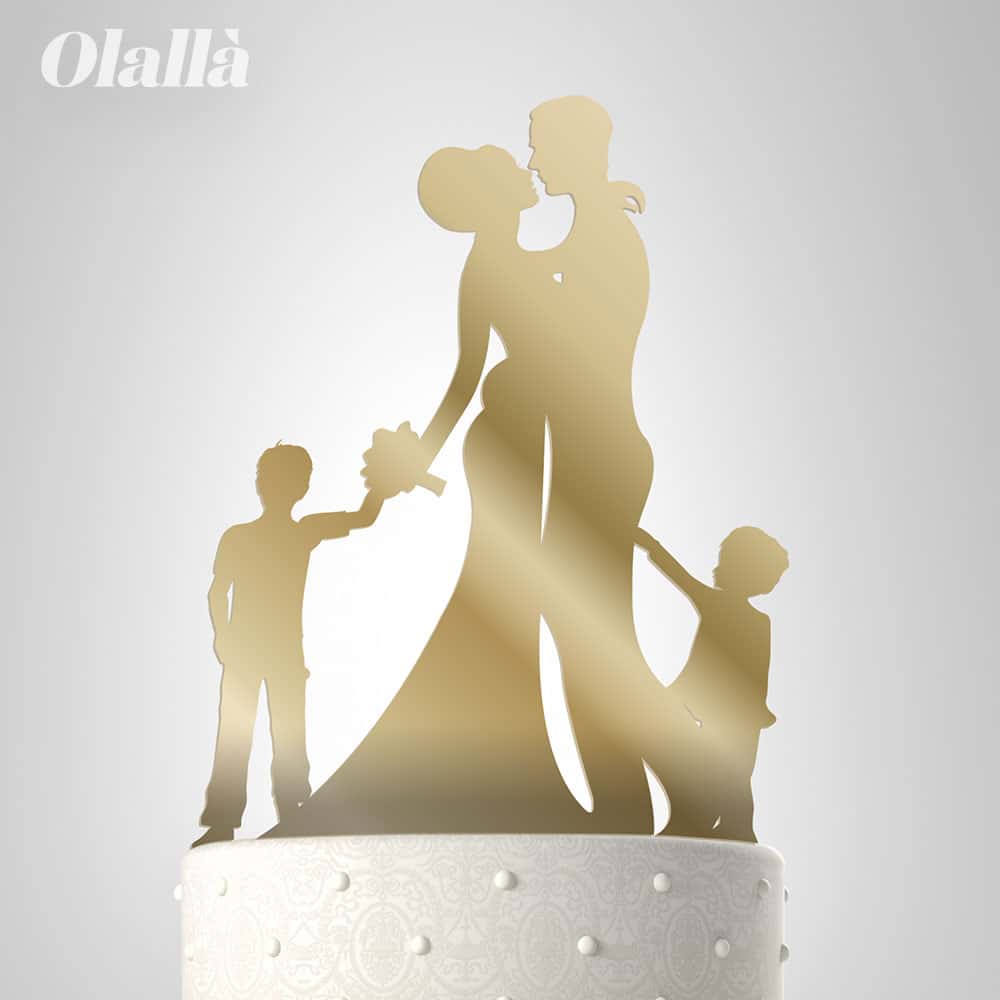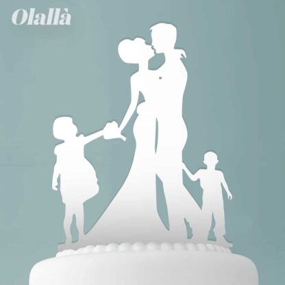 Splendido cake topper con coppia di sposini e i propri bambini Un modo originale e molto personale per dare un tocco unico alla vostra torta nuziale. Vi basterà semplicemente inserirlo sulla base più alta della vostra torta di matrimonio per trasformare con stile il look della stessa.