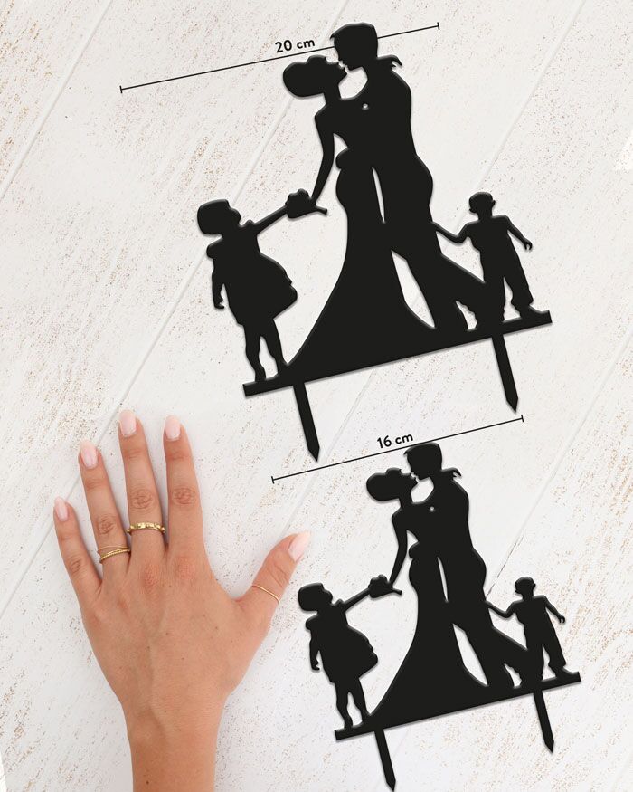La lunghezza dei bacchetti che vanno inseriti sulla torta è pensata in modo che ci siano “3 cm” per inserire stabilmente il cake topper all’interno della torta. Se necessitate di un bacchettino più corto o più lungo, o se avete bisogno di misure speciali contattateci a servizioclienti@olalla.it saremo felici di potervi aiutare.L’altezza del cake topper dipende anche dalle eventuali personalizzazioni richieste.