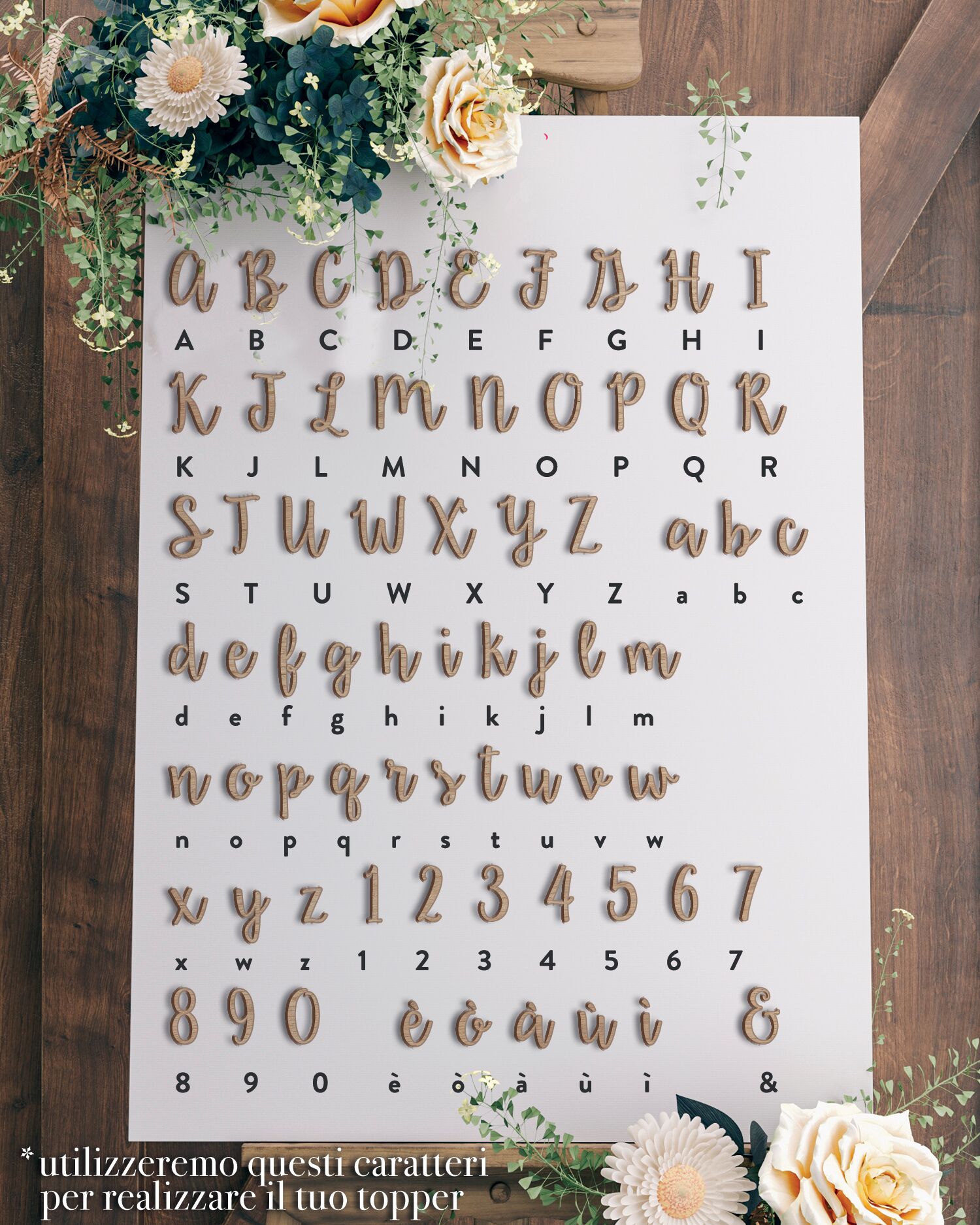 Questi cake toppers sono incisi a laser su acrilico spesso 2 mm o legno di betulla spesso 3 mm a seconda della vostra preferenza. Se non siete sicuri di che dimensione o colore scegliere il vostro cake topper, contattateci a servizioclienti@olalla.it per ricevere la nostra consulenza!