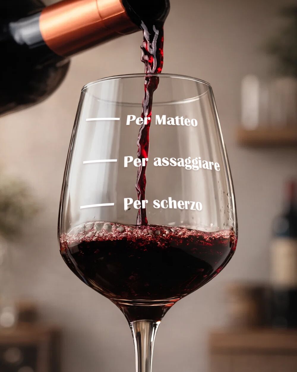 Aggiungi un pizzico di humour al tuo prossimo incontro enogastronomico con il nostro esclusivo Calice “Per Scherzo – Per Assaggiare”, personalizzato con nome. Questa idea regalo non solo è perfetta per lui o per lei, ma è ideale per qualsiasi amante del vino che apprezza un tocco di leggerezza e divertimento. Scopri come questo calice può trasformare qualsiasi serata in un momento indimenticabile.