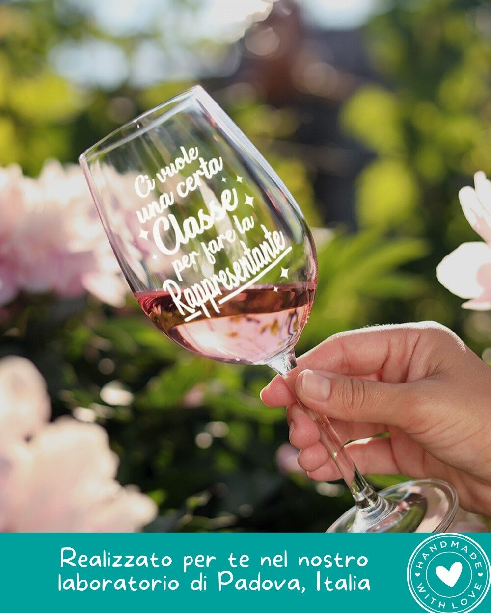 • Personalizzazione Artigianale a Rilievo: Ogni calice è personalizzato con maestria artigianale, garantendo che la frase “Ci Vuole una Certa Classe Per Fare la Rappresentante” sia più di un semplice messaggio: è un tributo alla personalità e allo stile unico del destinatario.