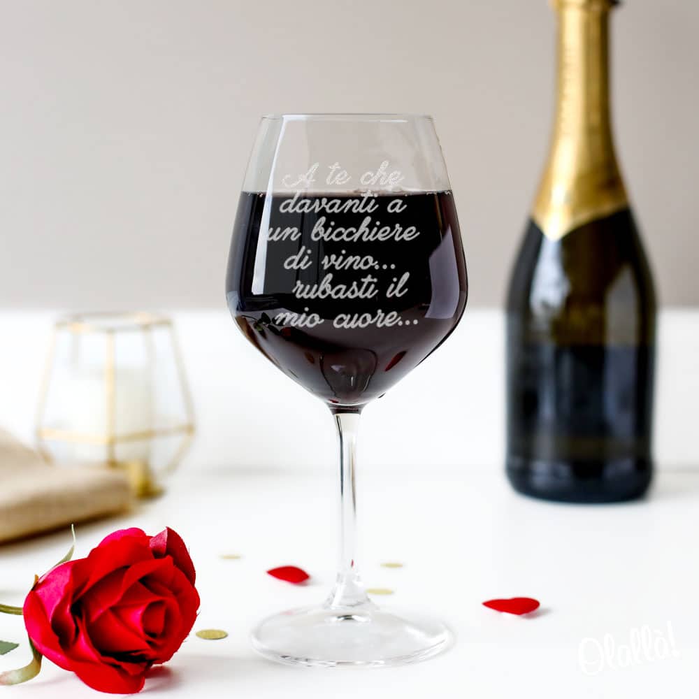Meraviglioso calice ideale per assaporare vini pregiati incisi con motivo o dedica personalizzata. 100% Alta Qualità Made in Italy incisi a laser in maniera indelebile. Una simpatica idea per celebrare con stile l’anniversario sia vostro che di una coppia a voi cara.
