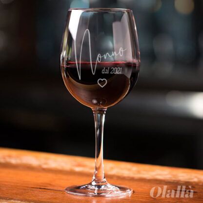 Calice da vino made in Italy personalizzato con l’incisione della scritta “NONNO” o “NONNA” dal e l’anno di nascita del loro nipotino. Un modo simpatico per fare un regalo originale per un genitore che festeggia quest’anno l’atteso traguardo del diventare nonno!