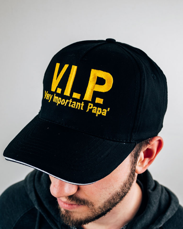 Il cappellino per il papà “VIP” è un berretto ricamato con la scritta “V.I.P. – Very Important Papà”. Un gadget casual che è anche molto comodo e utilizzabile in ogni occasione, da un papà che ci tiene a dimostrare quanto è importante per i propri figli! Questo cappellino con visiera è un versatile e simpatico capo d’abbigliamento estivo, ottimo per stare insieme in famiglia, ad esempio a una grigliata in giardino, una cena a casa, al campeggio o in vacanza! Un berretto per padri assolutamente speciali!