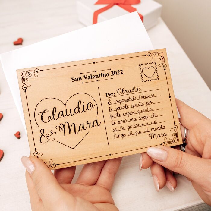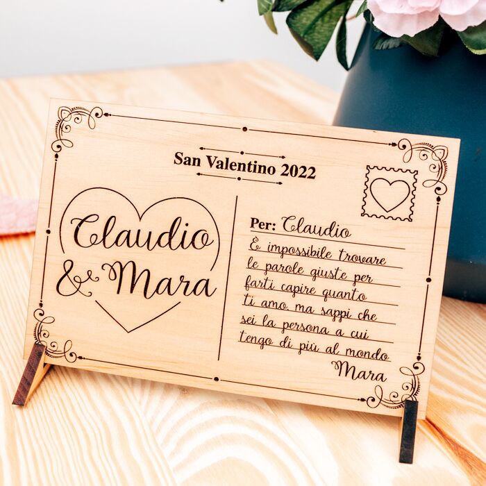 Cartolina in Legno Personalizzata con Dedica e Foto – Idea Regalo San Valentino
