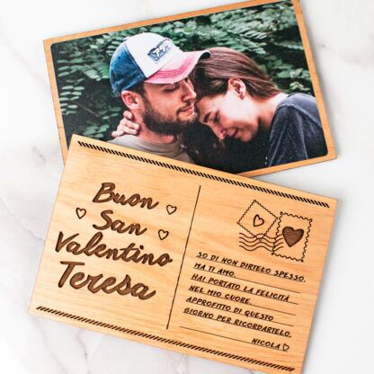 Cartolina in Legno Personalizzata con Foto e Dedica – Idea Regalo San Valentino