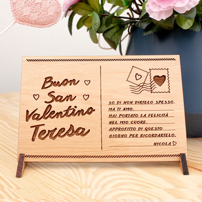 Romantica Cartolina in Legno Personalizzabile con la tua Frase Romantica e la vostra Foto. Una bellissima idea regalo per San Valentino o per l’anniversario, oppure come biglietto alternativo per ricordare al tuo amore quanto è importante per te.