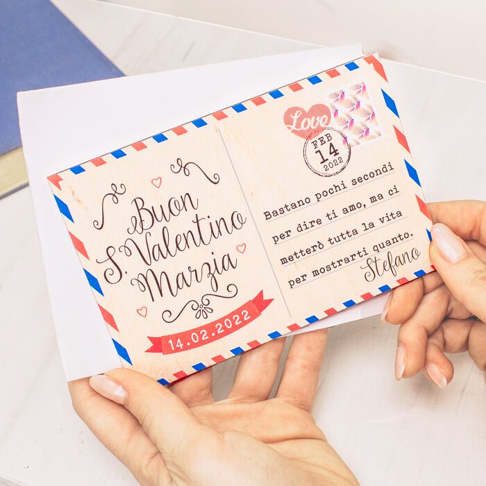 3 recensioni per Cartolina in Legno Personalizzata Stile Lettera con Dedica e Foto – Idea Regalo San Valentino