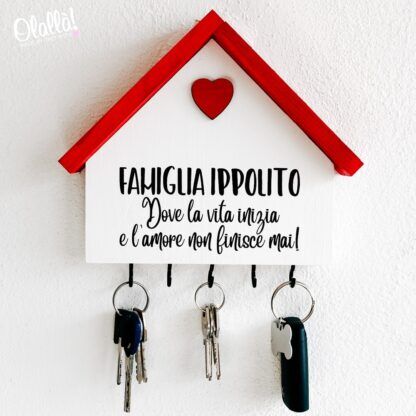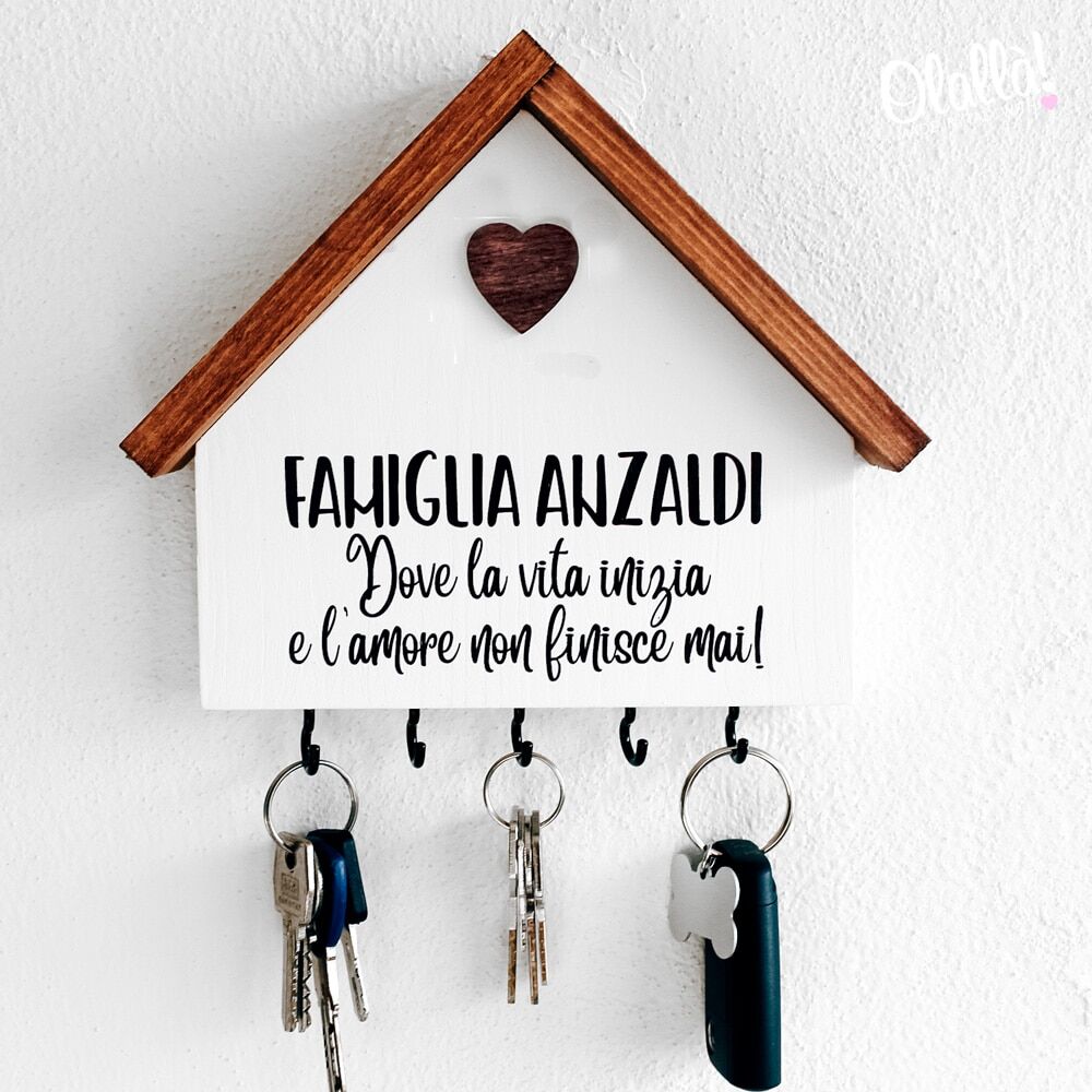 Casetta Appendichiavi in Legno Personalizzata con Nome della Famiglia e Frase