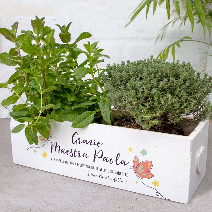 Cassettina per Erbe Aromatiche con Farfalle Colorate “Grazie Maestra” Personalizzata con Nome – Idea Regalo per le Maestre, Fine Anno