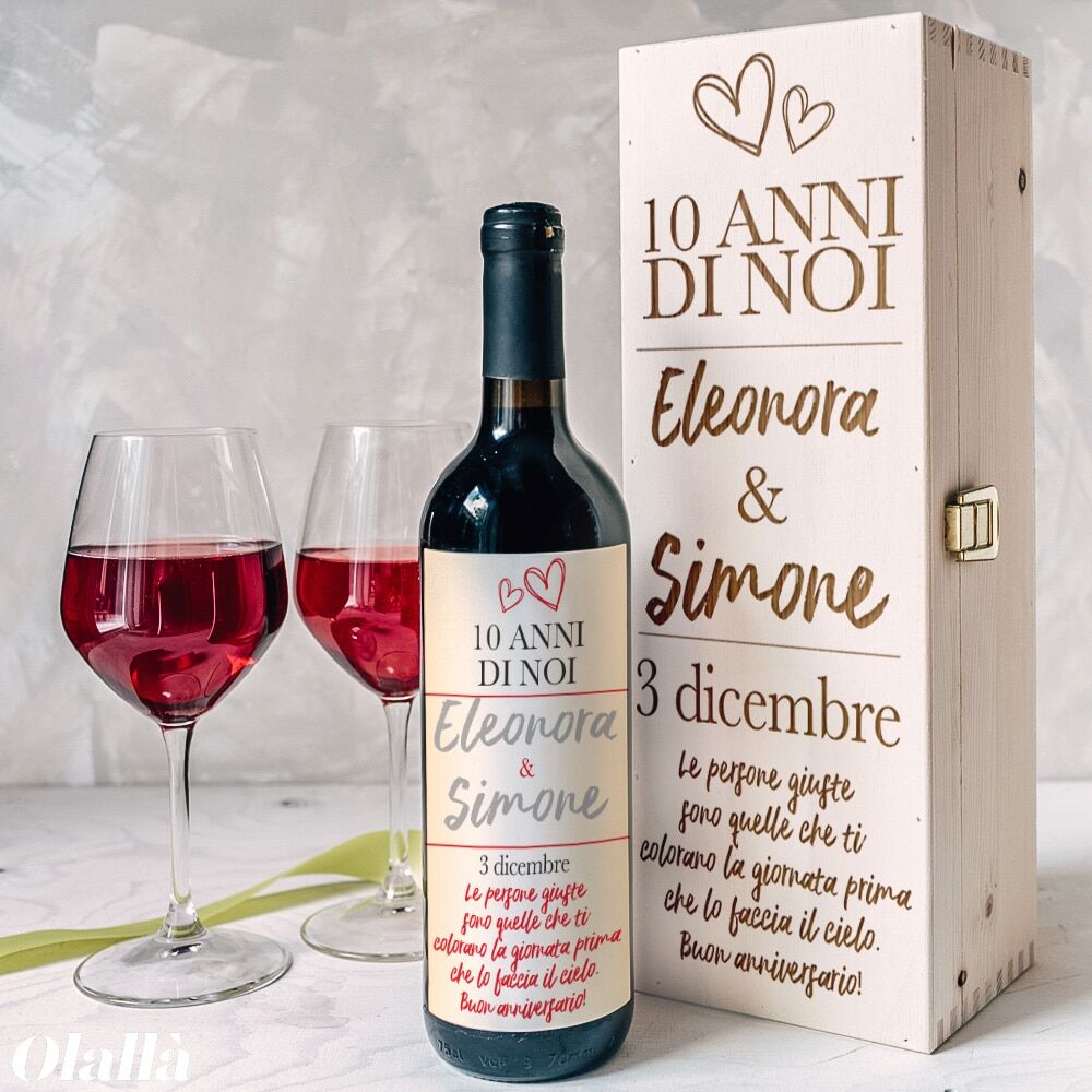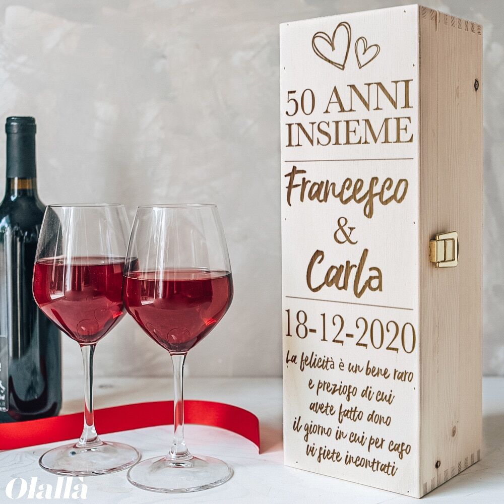 Il prodotto le è piaciuto? Cassetta e bottiglia con scritta personalizzata realizzate in modo molto professionale e di squisito gusto estetico, in particolare la cassetta in legno con scritta pirografata è realizzata molto bene.