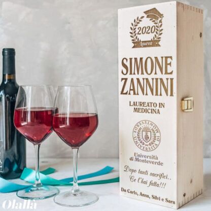 Buongiorno, volevo farvi sapere che il prodotto è arrivato in tempi brevi ed ha soddisfatto in pieno le mie aspettative. La cassetta portavino personalizzata per la Laurea è un’idea originale ed è molto ben realizzata. La confezione è veramente accurata e a prova di ogni urto possibile. Ottimo prodotto . Sicuramente consigliato. 5 stelle
