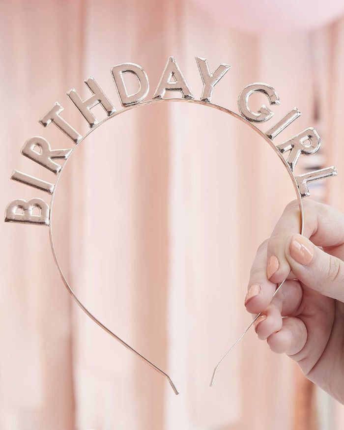 Cerchietto Fermacapelli Tiara Rose Gold “Birthday Girl” – Accessorio Festa di Compleanno