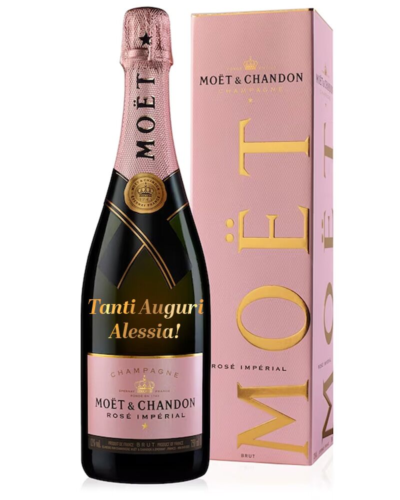 Rendete un compleanno davvero speciale con la nostra bottiglia di Moët & Chandon Rosé Impérial, ora personalizzabile con una scritta in pellicola adesiva ad effetto oro specchiato. Incidete un messaggio personalizzato che risplende di eleganza e raffinatezza, perfetto per fare un regalo indimenticabile.
