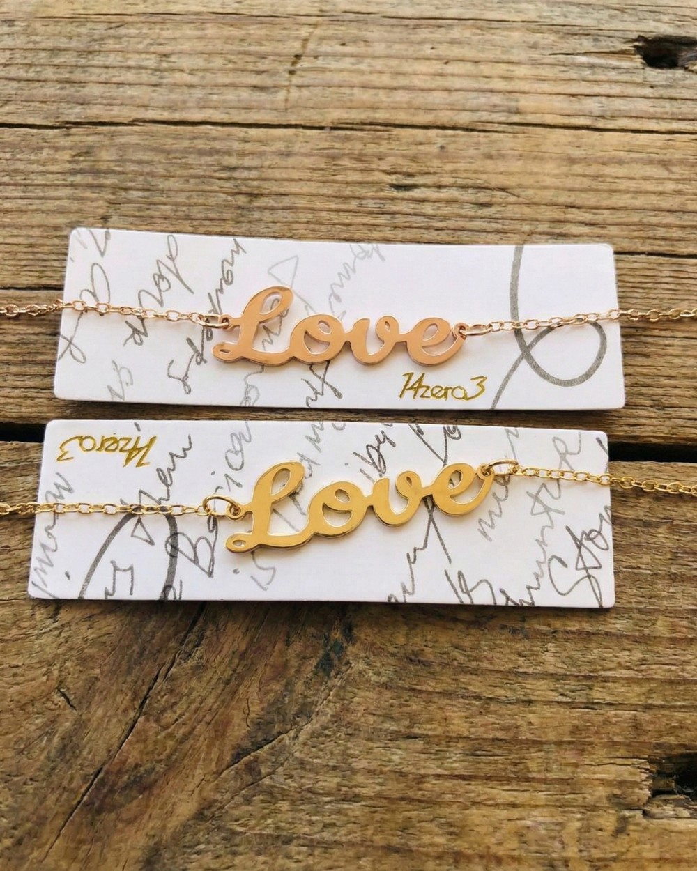 Ciondolo con scritta “Love” in carattere elegante e romantico