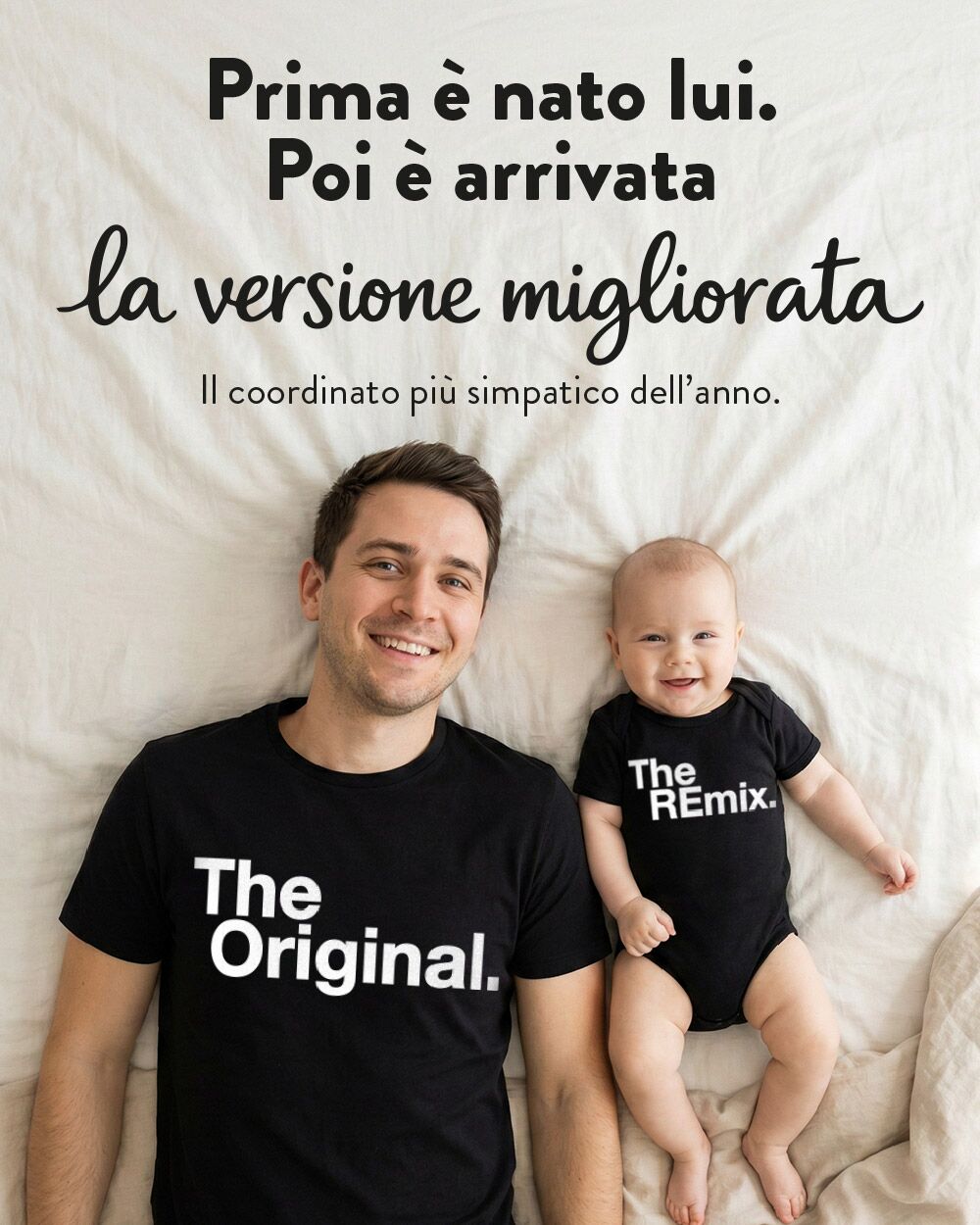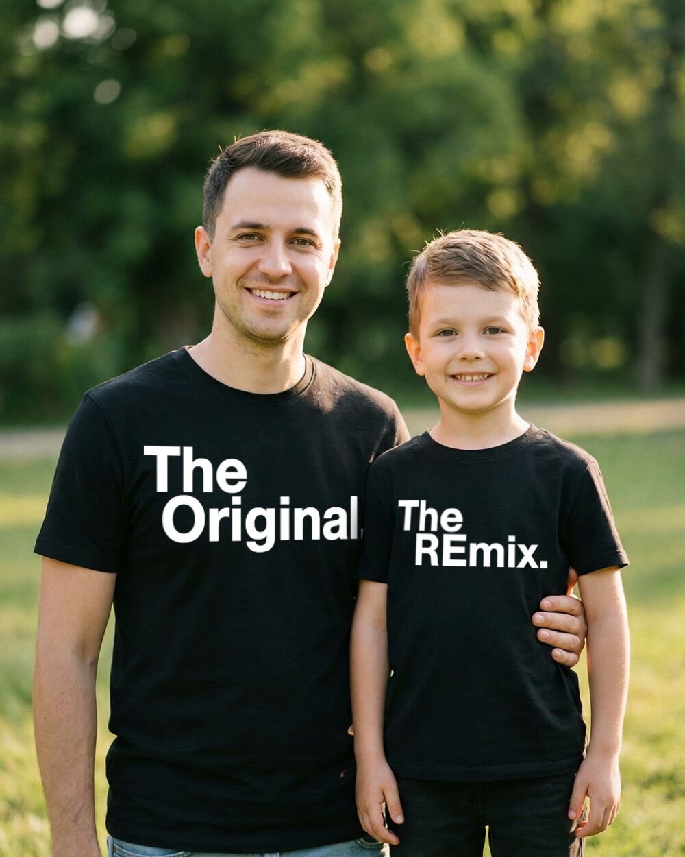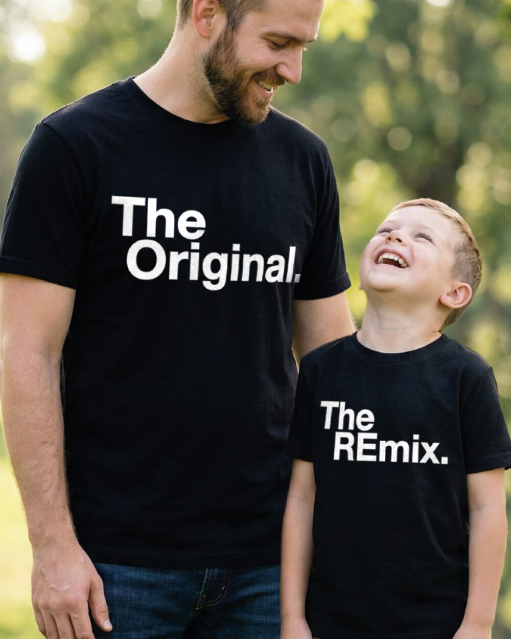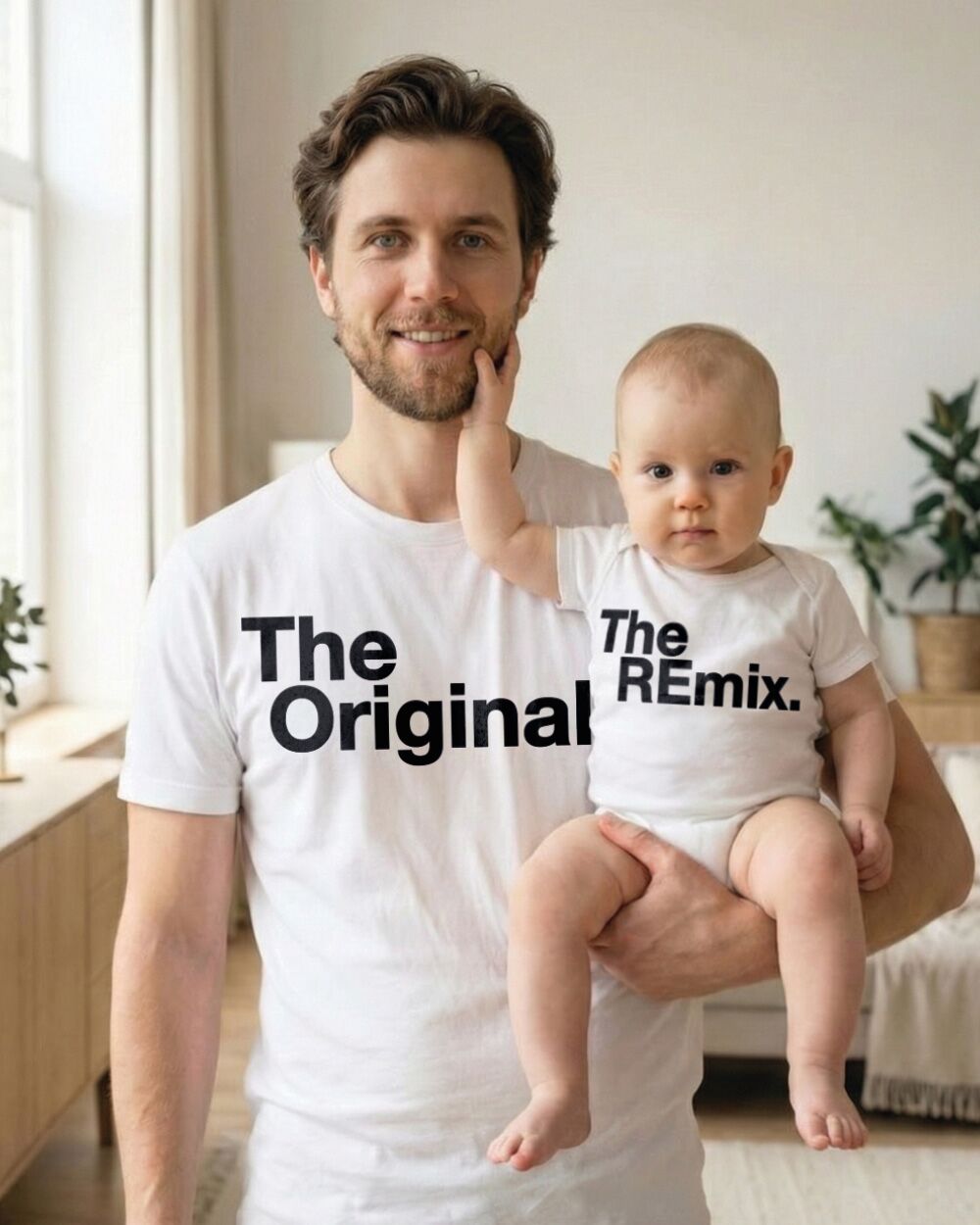 Vuoi sorprendere un papà speciale con un regalo che esprima tutto l’amore per il suo piccolo? Il Set Coordinato Body/T-shirt Papà e Figlio “The Original – The Remix” è la scelta perfetta! Un design simbolico che rappresenta il rapporto unico tra un padre e il suo bambino, in modo ironico e affettuoso. Il papà è “The Original”, il primo, l’inizio di tutto, mentre il figlio è “The Remix”, la versione più piccola ma altrettanto speciale.