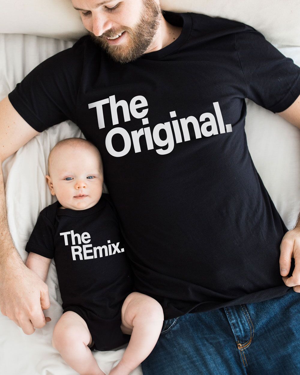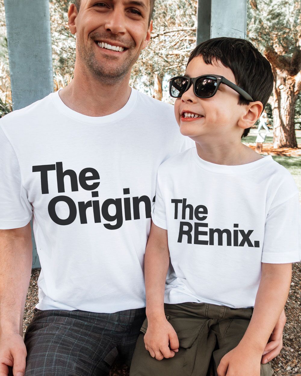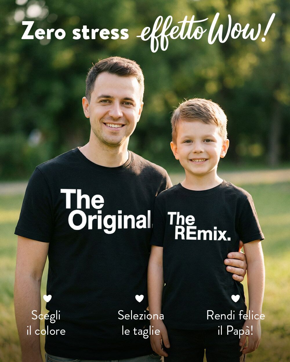 Nel prezzo sono comprese una maglia per papà con la scritta “The Original” e una per bambino con la scritta “The Remix”.