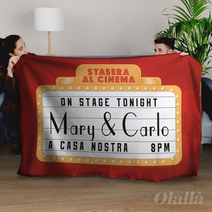 Plaid Coperta in Pile Personalizzata con Stampa Cinema – Idea Regalo Coppia