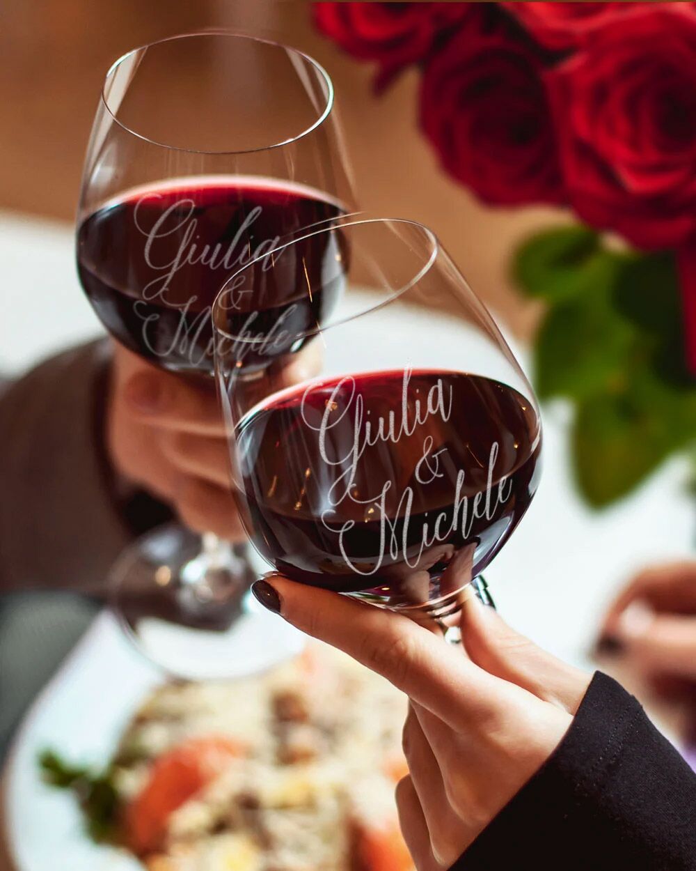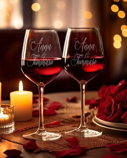 - Un regalo che parla di voi: Personalizzare i calici con i vostri nomi trasforma un semplice brindisi in un momento intimo e speciale. Ogni sorso sarà un dolce richiamo alla vostra connessione unica.
