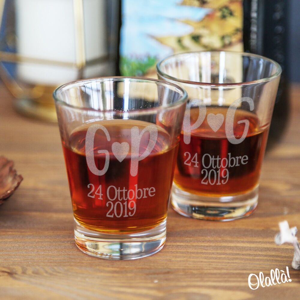 Solidi e ultracristallini, con questi bicchierini da liquore renderete davvero speciale il brindisi per il vostro anniversario. Sono incisi a laser con motivo o dedica personalizzata. 100% Alta Qualità Made in Italy.