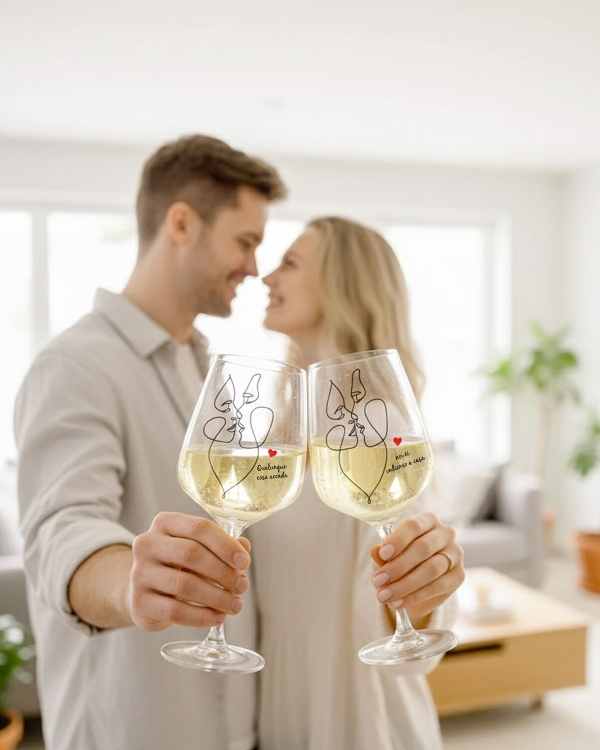 PERSONALIZZAZIONE: personalizza i calici con i vostri nomi o una frase speciale. La decorazione a cuore inclusa nel design line art. Inoltre è possibile scegliere la silhouette degli innamorati tra le seguenti varianti: uomo–donna, donna–donna, uomo–uomo.