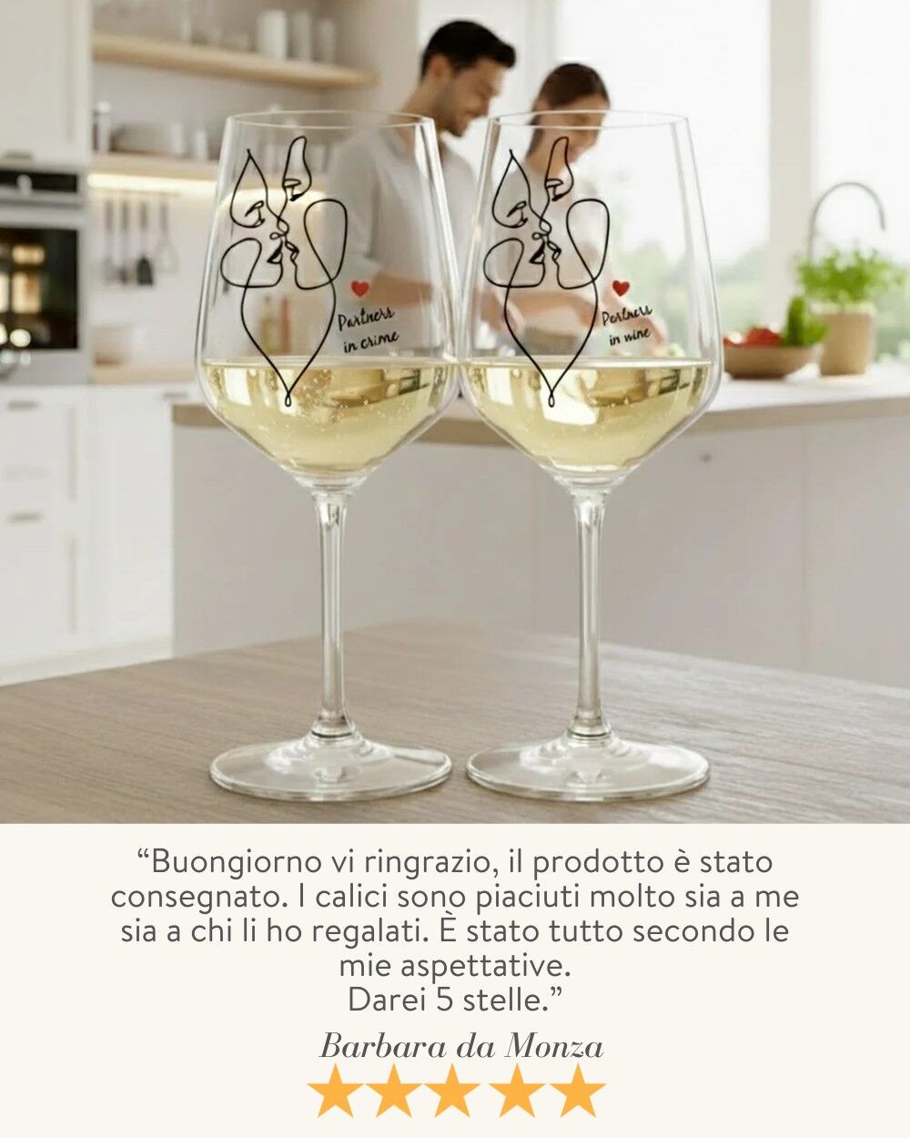L’ordine che ho effettuato è appena arrivato ed è splendido! Calici di ottima qualità e personalizzazione perfetta. Per non parlare dei tempi di spedizione super rapidi. Davvero grazie!
