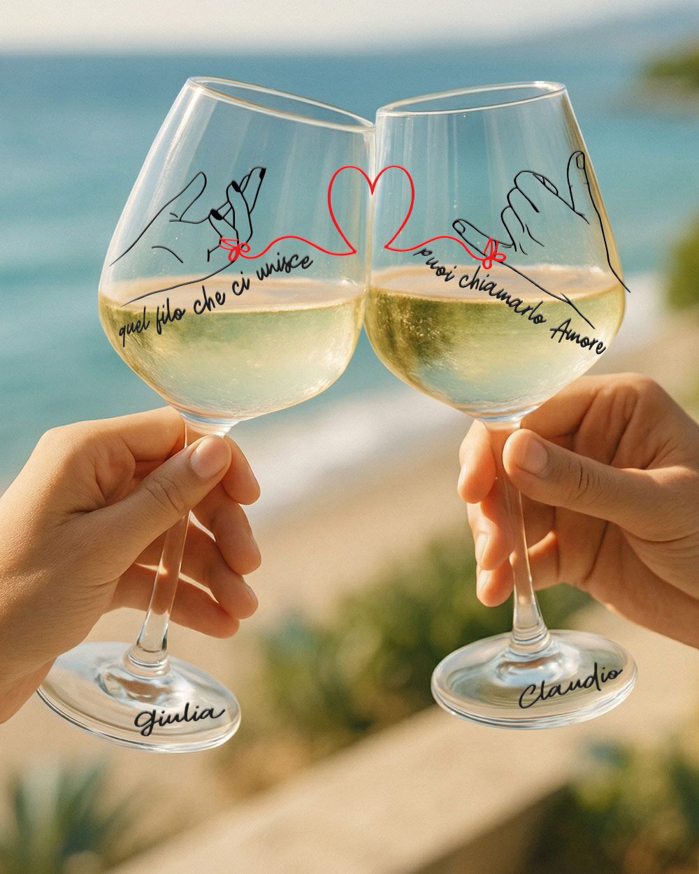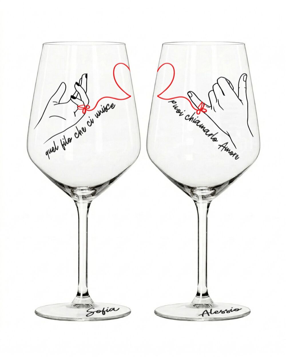 C’è qualcosa di magico nell’idea del filo rosso del destino: quella connessione invisibile che lega due persone fin dall’inizio, che resiste alla distanza, al tempo e a ogni tempesta. Questi calici personalizzati per coppia raccontano esattamente quella storia — la vostra.
