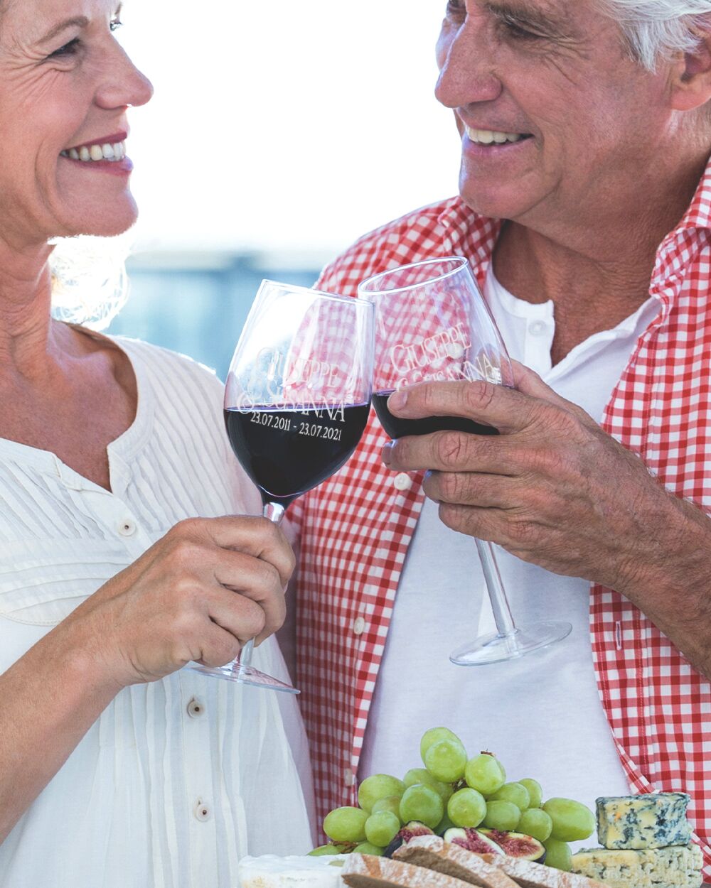 - Personalizzazione Unica e Sentita: La vera magia di questo dono risiede nella sua personalizzazione: i nomi della coppia incisi elegantemente accanto alla loro data d’anniversario. Questo dettaglio trasforma i calici in un tesoro unico, che racconta la vostra storia d’amore e celebra i capitoli futuri ancora da scrivere.