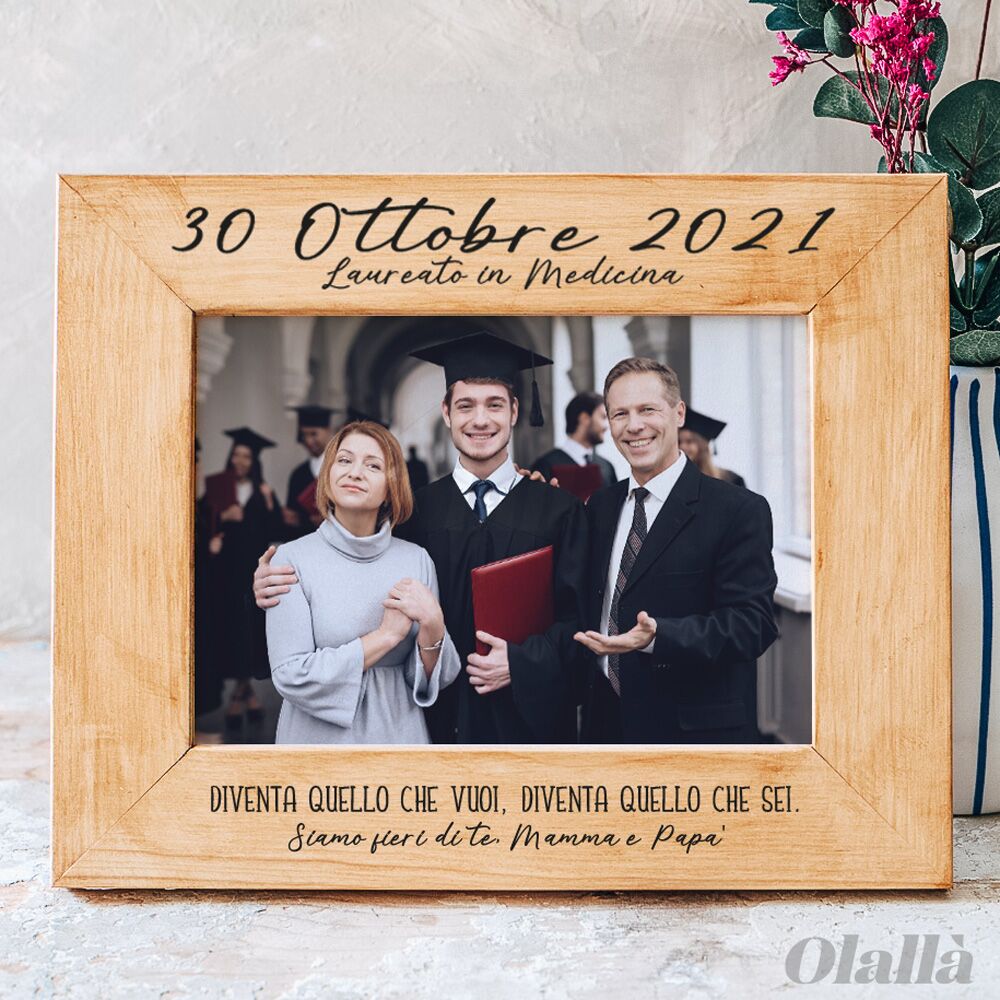 Bellissima cornice in legno personalizzata per la laurea con la data e la tua dedica. Un regalo laurea davvero speciale che emozionerà il festeggiato in uno dei giorni più importanti della sua vita!