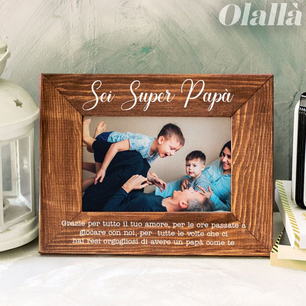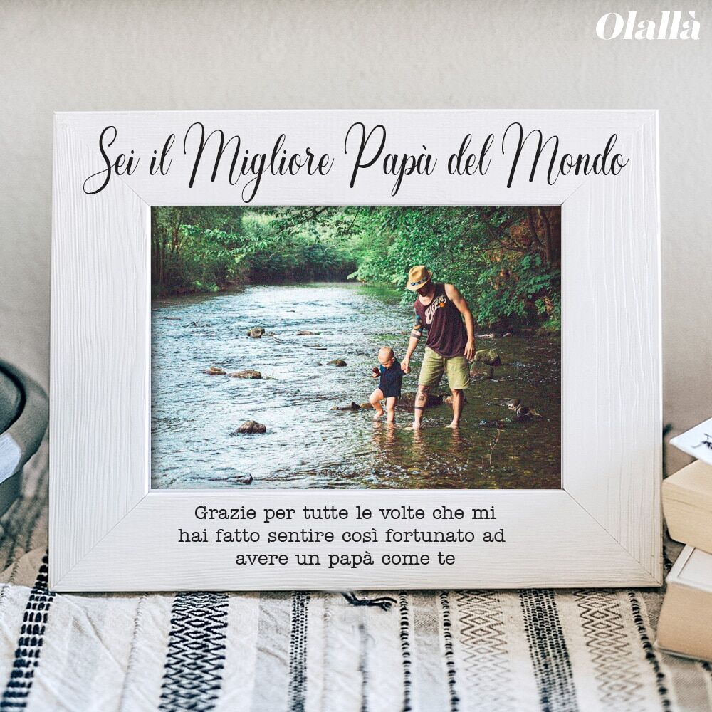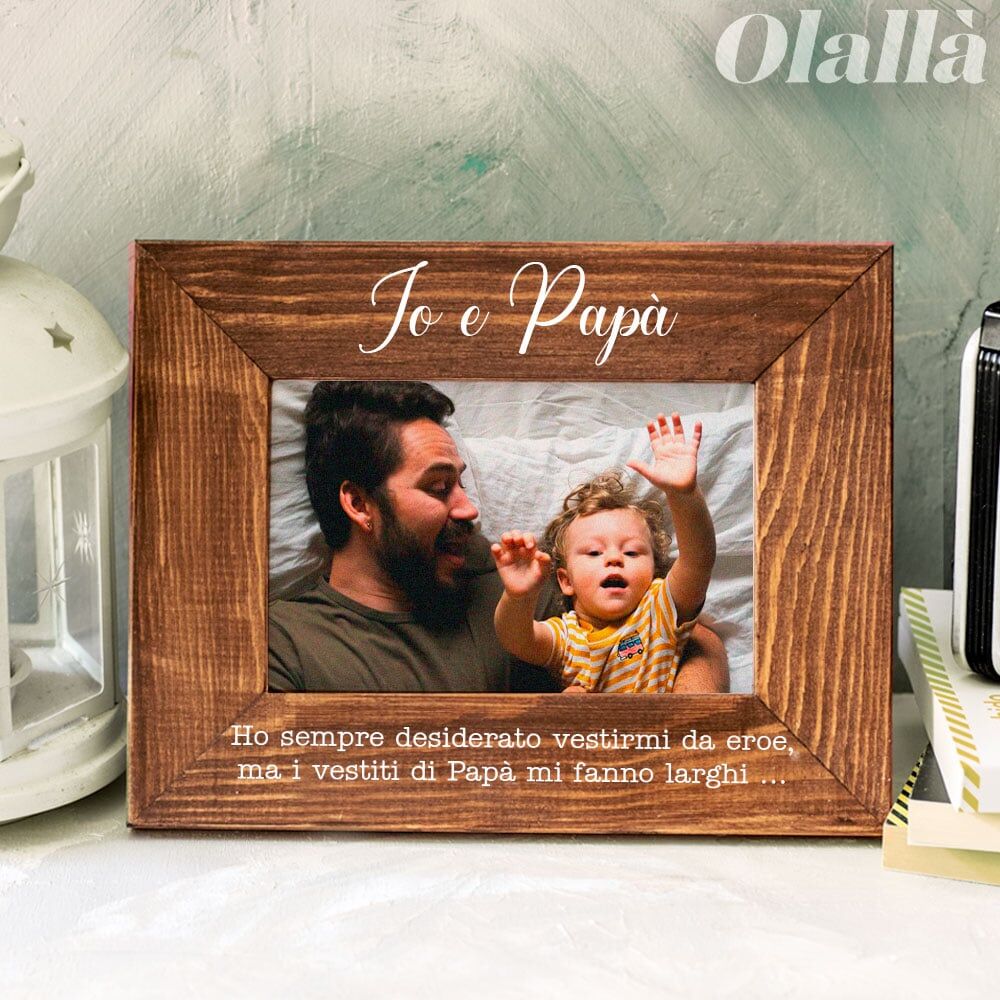 Splendido portafoto cornice in legno personalizzata con incisione dedicata alla festa del Papà. Un dono che potrà sempre tenere vicino a sé ricordandosi del suo piccolo!