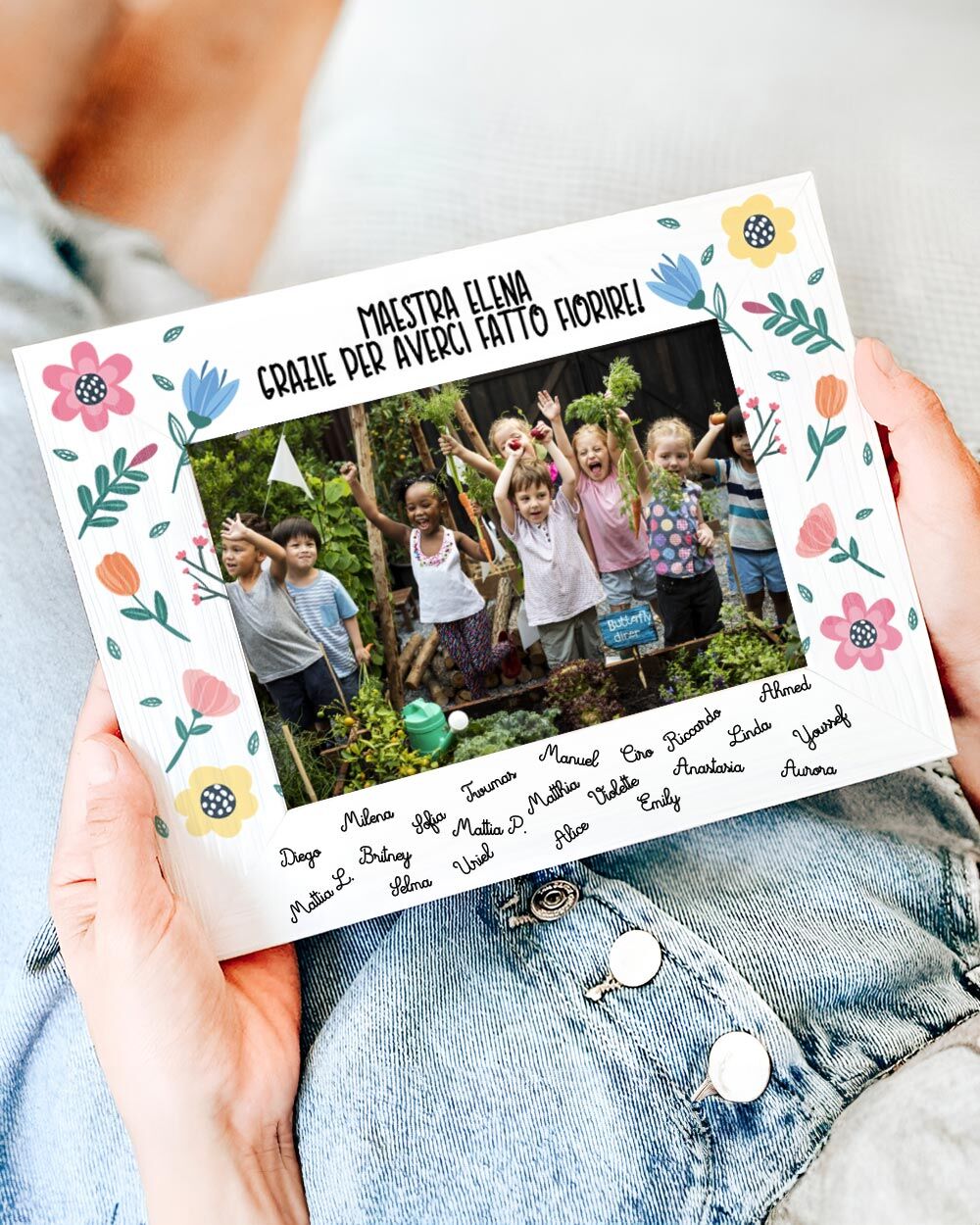 - Personalizzazione Completa: La nostra cornice ti permette di inserire il nome della tua maestra, i nomi degli alunni e una dedica speciale. Questa personalizzazione rende il regalo unico, mostrando alla tua insegnante quanto apprezzi il suo lavoro e il suo impegno.