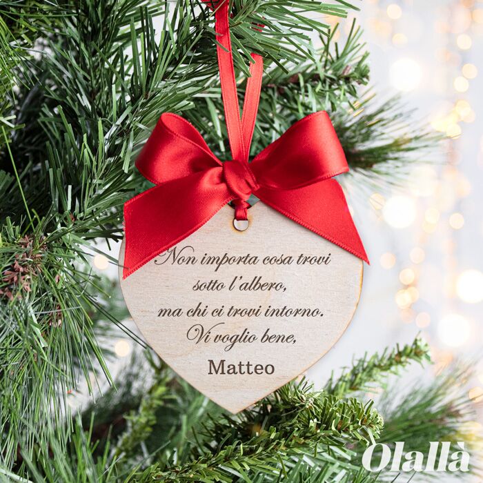 Cuore in Legno, Decorazione da Appendere all’Albero di Natale Personalizzata con la tua Dedica – Regalo di Natale