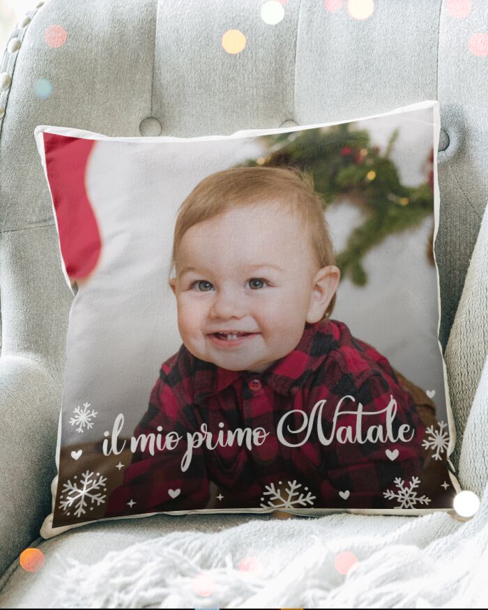 Adorabile cuscino natalizio personalizzabile con dedica, foto e fiocchi di neve. Rendi magico il Natale regalando ad amici e parenti questo cuscino speciale che renderà la tua casa unica e super natalizia!