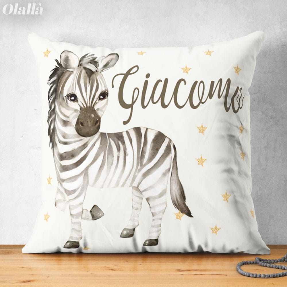 Cuscino Personalizzato con Dolce Zebra e Nome del Bambino