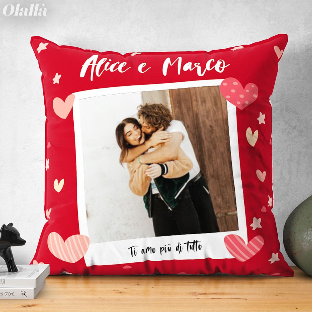 Cuscino Personalizzato con Foto Polaroid Nomi e Dedica d’Amore