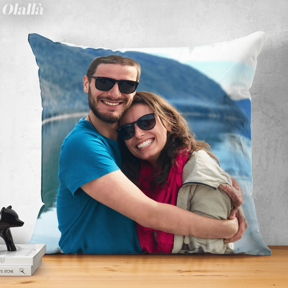 Cuscino con foto del vostro posto del cuore, frase e data personalizzata. Il regalo perfetto per tenere sempre con voi un pezzo della vostra storia d’amore, tutto da stringere e perfetto per far parlare la vostra casa di voi!