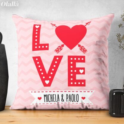 Cuscino Personalizzato Love con i Vostri Nomi e Dedica