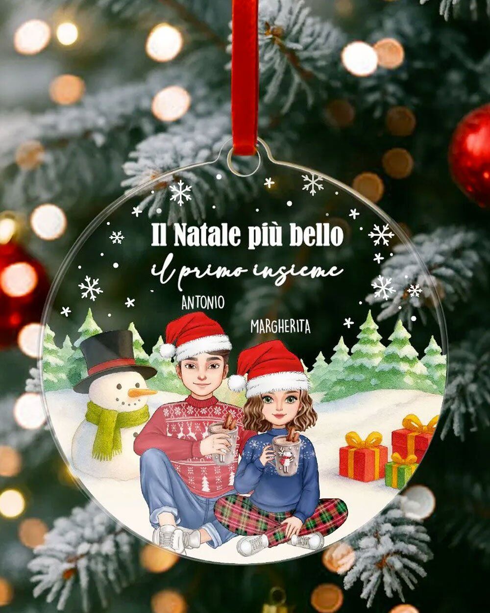 Decorazione di Natale, Pallina in Plexiglass Personalizzata con Ritratto e Pupazzo di Neve – Idea Addobbo per l’Albero, Regalo di Natale per Coppia