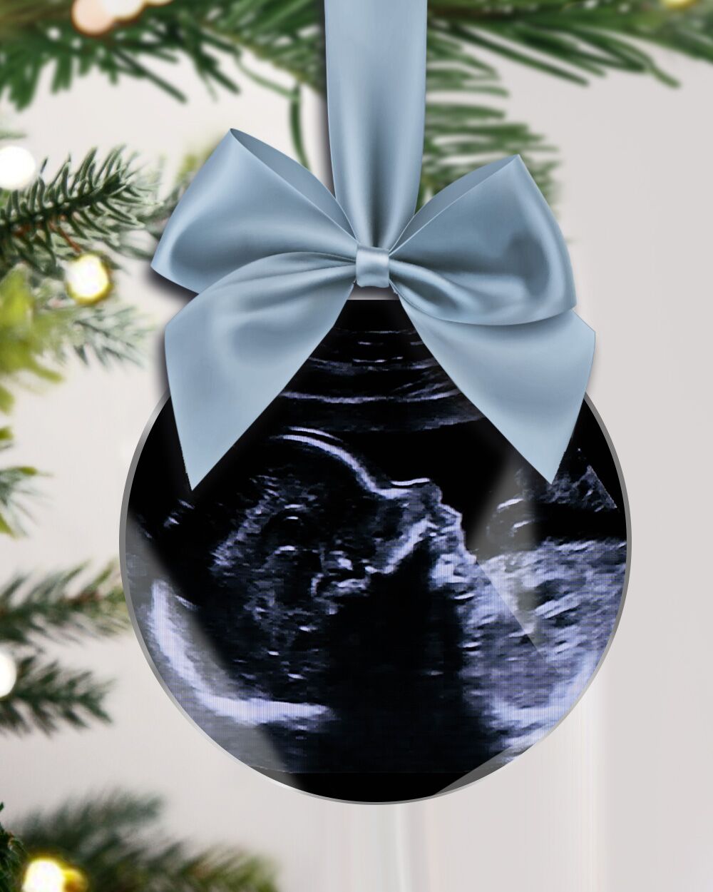 Incredibile Pallina Decorazione per Albero di Natale stampata con la foto dell’ecografia del tuo bimbo o bimba. Stampata in alta qualità su una pallina dall’effetto lucido e fotografico, è adornata da un fiocco di splendido raso. Questa pallina sarà un perfetto regalo natalizio per tutti i genitori che attendono una nuova vita in famiglia.