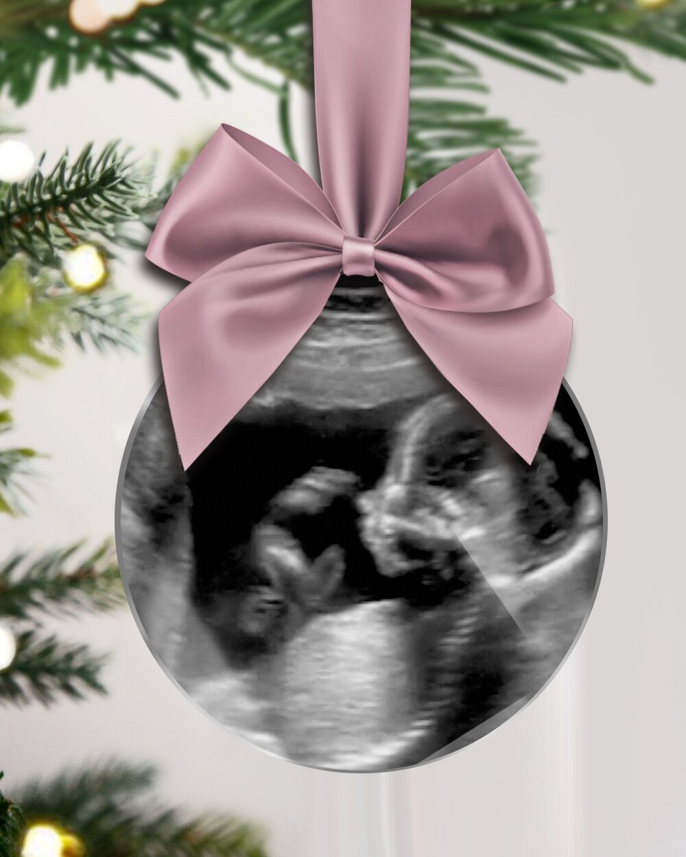 Incredibile Pallina Decorazione per Albero di Natale stampata con la foto dell’ecografia del tuo bimbo o bimba. Stampata in alta qualità su una pallina dall’effetto lucido e fotografico, è adornata da un fiocco di splendido raso. Questa pallina sarà un perfetto regalo natalizio per tutti i genitori che attendono una nuova vita in famiglia.