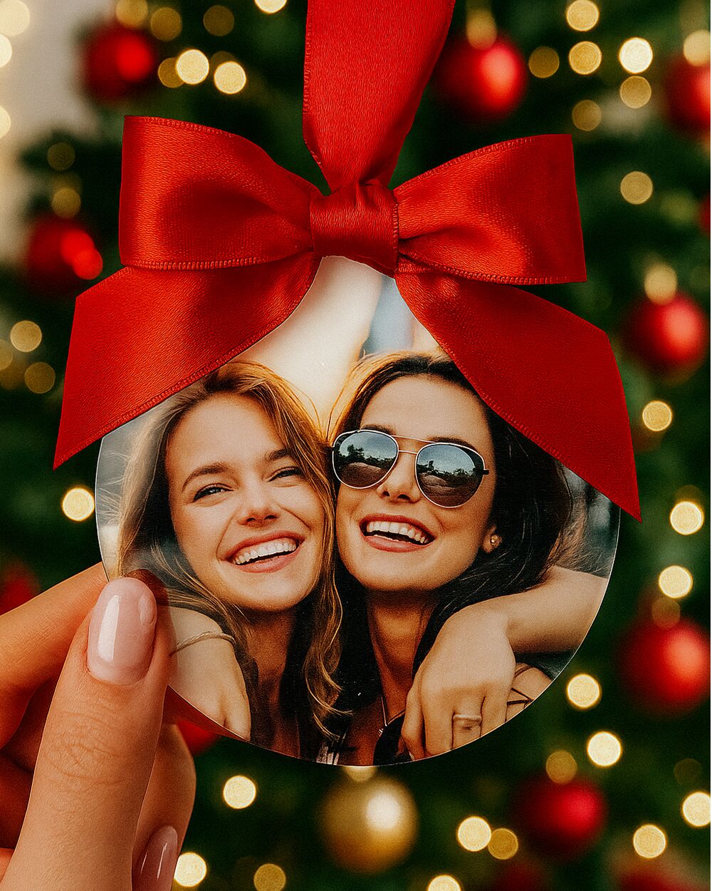 Decorazione di Natale Pallina Personalizzata con Foto, Fiocco Rosso – Idea Regalo Natale Amici