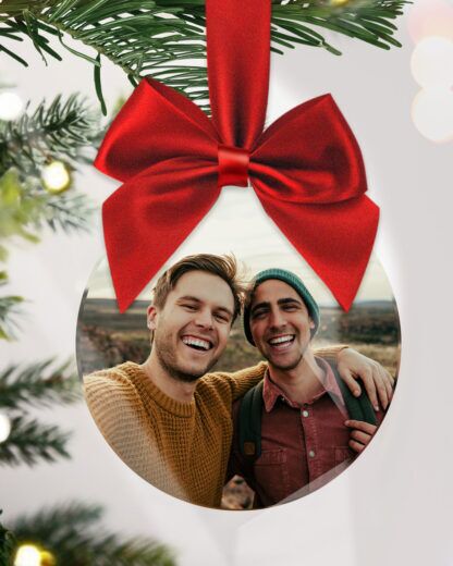 Decorazione di Natale Pallina Personalizzata con Foto, Fiocco Rosso – Idea Regalo Natale Amico